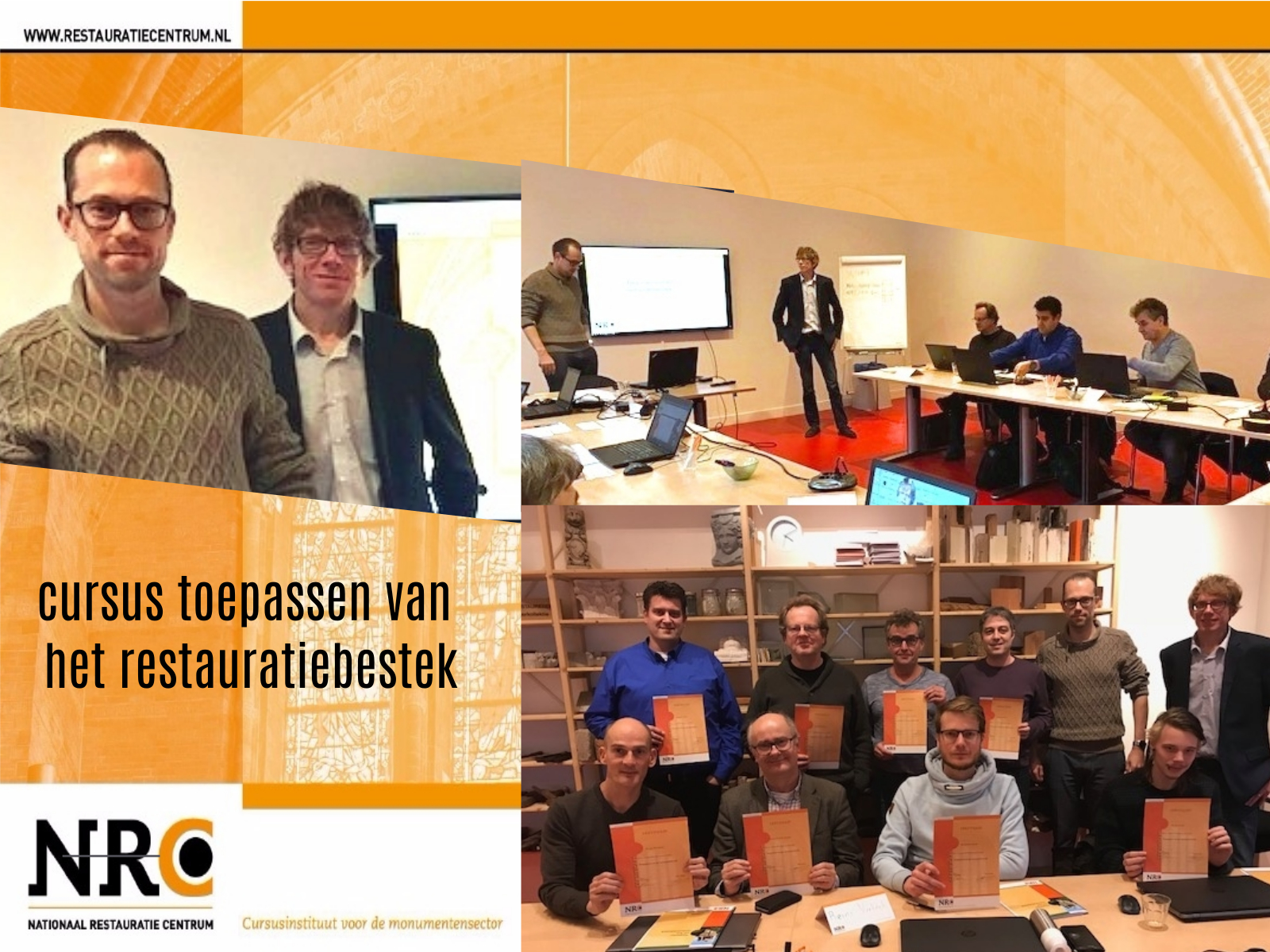 In december 2017 werd voor de eerste keer bij het Nationaal Restauratiecentrum (NRC) in Amersfoort de cursus Toepassen van het restauratiebestek gegeven. Volker Vlaming (Vlaming Erfgoed) in samenwerking met Stefan van Katier (Kabu BV) hebben de cursus en de syllabus ontwikkeld en doceren deze cursus. Meer over de inhoud van de cursus is te vinden op de pagina van NRC.